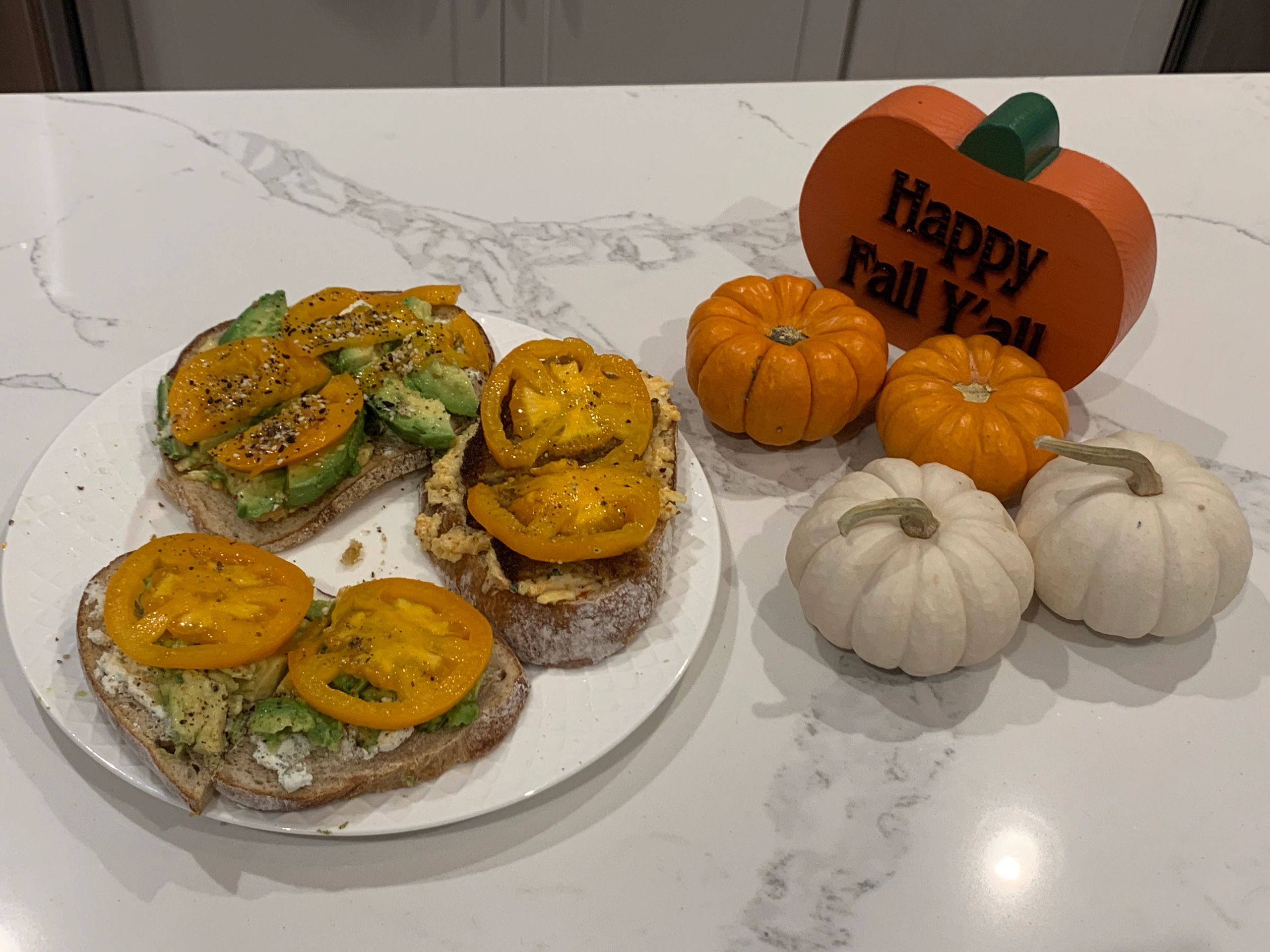 ~ Half goat cheese and half pimento, avocado, and again the heirloom tomato and everything bagel seasoning from @traderjoes to top!